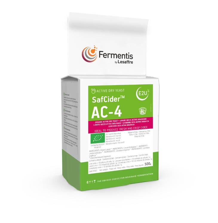 Органічна версія SafCider™ AC-4. Забезпечує дуже хороше засвоєння фруктози та чудово підходить для сидру з низькою щільністю. Інгредієнти: Дріжджі ( Saccharomyces cerevisiae ), емульгатор: сорбітан моностеарат (E491)